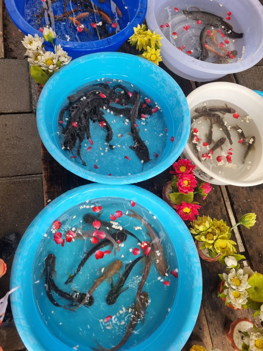 บริการถึงที่ จัดส่งพร้อมกะละมัง ดอกไม้และคนบริการยกปลา จนจบการปล่อยปลา